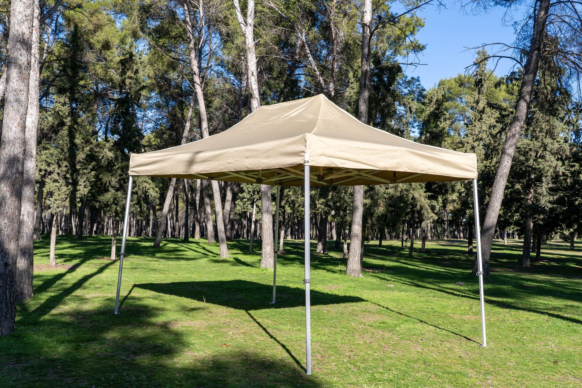Carpa plegable resistente y fácil de montar, perfecta para protegerte del sol en reuniones al aire libre, camping, playa, ferias o eventos. Diseño estable con estructura de aluminio y techo de tela duradera impermeable que proporciona amplia sombra.